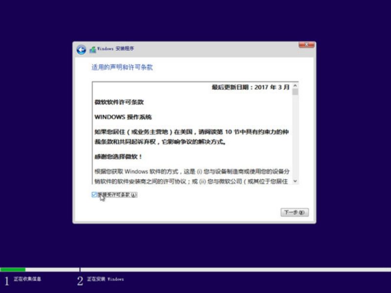 在Windows安裝程序中點擊“現(xiàn)在安裝”開始,一步步往里點。