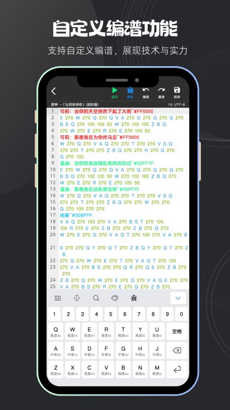 ③歌詞語(yǔ)法(進(jìn)階):可以在彈琴的時(shí)候出現(xiàn)歌詞,并且可以自定義歌詞顏色