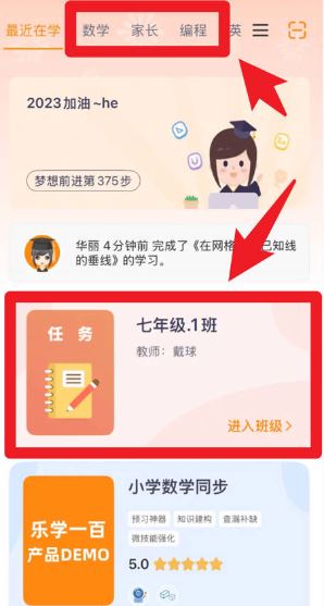 4、在學(xué)習(xí)界面,用戶能進(jìn)入班級(jí)查看教師布置的任務(wù),切換到數(shù)學(xué)、編程等學(xué)習(xí)欄目,輕松完成課程安排。
