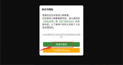 1、在協(xié)議與隱私提示中點擊"同意并繼續(xù)",即可進(jìn)入應(yīng)用。