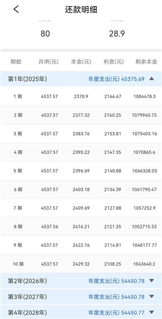 7、點(diǎn)擊每一年可查看每一期的還款金額。