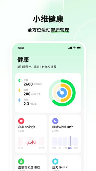 小維健康app是一款非常優(yōu)秀的健康服務(wù)軟件,能夠配合穿戴和健康類設(shè)備實現(xiàn)科學(xué)的運動監(jiān)測和健康監(jiān)測,在這里用戶可以通過綁定智能設(shè)備實時監(jiān)聽自己的心率、壓力變化情況,還可以準(zhǔn)確監(jiān)測淺睡、深睡、清醒等不同睡眠階段。軟件還會將數(shù)據(jù)以圖表的形式呈現(xiàn)出來,并提供專業(yè)的數(shù)據(jù)評估和改善建議,幫助用戶更好的管理自己健康,從而讓用戶體驗健康生活的樂趣,感興趣的小伙伴們快來下載試試吧。