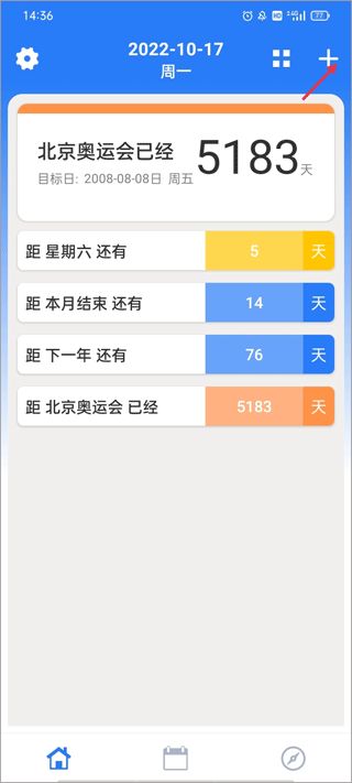 1、打開倒數(shù)助手app,默認進入主頁面,點擊右上角的“+”圖標。