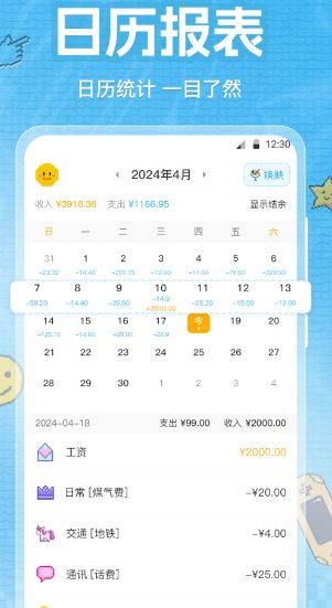 2、用戶也可以隨時(shí)切換你的記賬主題,讓你在線記賬更舒適。