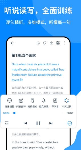 3、語(yǔ)音同步:中英文字幕與音頻同時(shí)突出顯示,便于比較和理解。