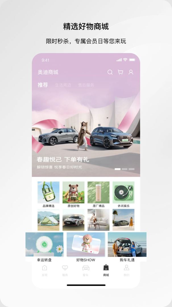 軟件內(nèi)活動參與、任務(wù)完成可累計積分,兌換專屬好禮和奧迪精品。