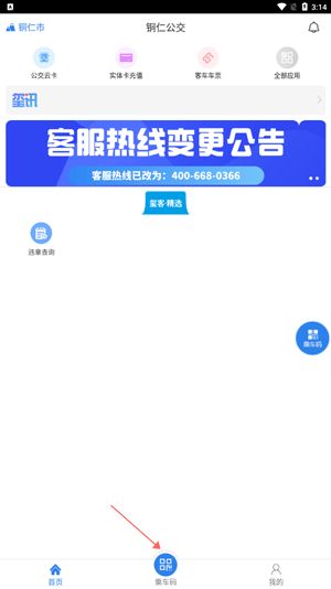1、首先確保我們申請開通了公交云卡,之后點擊下方的“乘車碼”。