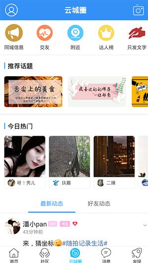 4、點開云城圈,可以查看其它用戶發(fā)布的動態(tài),方便交友;