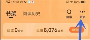 1、打開手機(jī)app,進(jìn)入書架頁,點(diǎn)擊右上角“更多”圖標(biāo)。