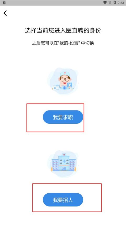 2、用戶可以選擇自己的身份,求職或者招聘都可以登陸該軟件。