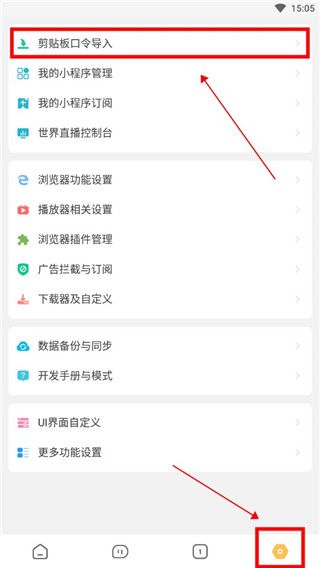 1、下載好app后,點擊進入右下角的設置,在這里選擇【剪輯版口令導入】。